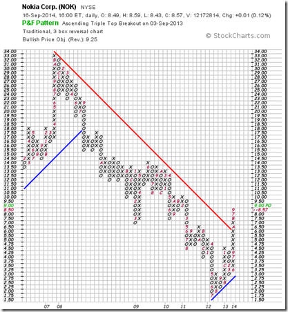 Das errechnete Kursziel liegt bei gut 9 Euro, aktuelle notiert Nokia knapp darunter.